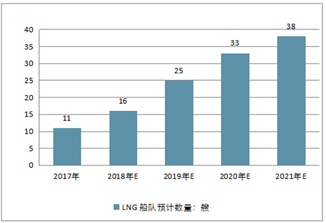 图表:2017-2019年中国LNG船行业市场规模