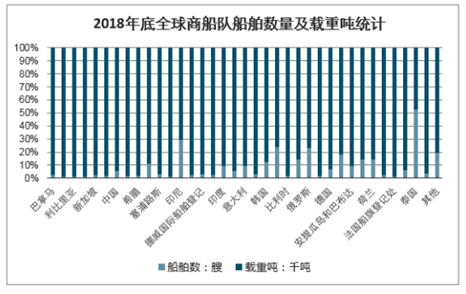 2018年底全球商船队船舶数量及载重吨统计