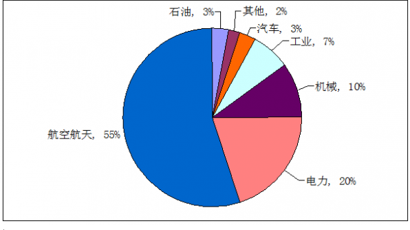 在众多应用领域中,航空航天仍然占据最重要地位,占需求总量的55%,其次是电力行业,占比达20%。