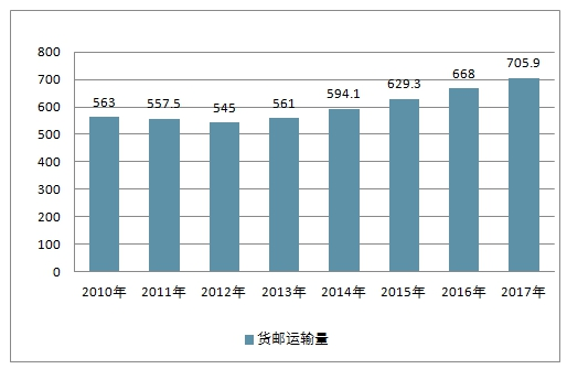 图表:2012-2019年中国民航货邮运输量及增长预测