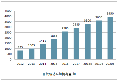 全国铁路动车组拥有量从 2012 年的 825 组增长至 2017 年的 2935 组,GAGR28.89%。预计 2018/2019/2020 年我国铁路动车组拥有量将达到 3300/3600/3950 组。随着轨交行业国产化率不断提升,国内轨交装备企业将充分受益。