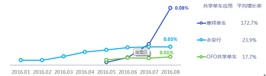 2016年1-8月主要共享单车应用覆盖率变化趋势