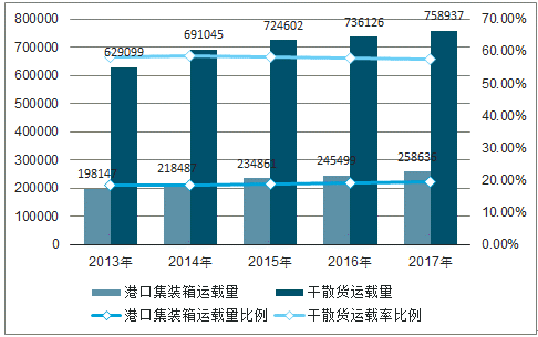 全国港口集装箱货物及散货吞吐量