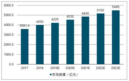 预测2019年我国美妆行业市场规模将达到4225亿元,2022年中国美妆行业市场规模将突破5000亿元,并预测在2023年中国美妆行业市场规模将增长至5490亿元左右,2019-2023年均复合增长率约为6.77%。