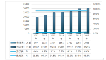 2018年我国竞技类泳镜产量为2085万副,占同期国内泳镜产量的6.4%;休闲类泳镜产量为30495万副,产量占比为93.6%。