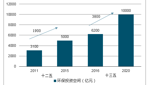 “十三五”期间环保投资空间是“十二五”的两倍(单位:亿元)