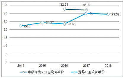 2014-2018年龙马环卫环卫设备单价(万元/台)