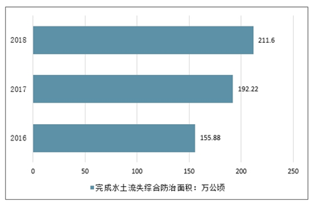 2016年我国完成水土流失综合防治面积为155.88万公顷,2018年,我国完成水土流失综合防治面积增长为211.6万公顷。