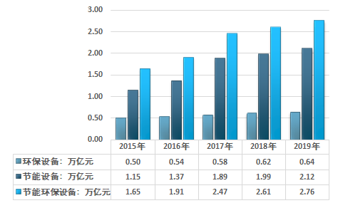 据统计2019年节能环保装备市场规模为2.76万亿元,其中环保装备市场规模为0.64万亿元,节能装备市场规模为2.12万亿元。