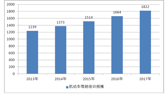 2013-2017年我国机动车驾驶培训行业市场规模预测(单位:亿元)
