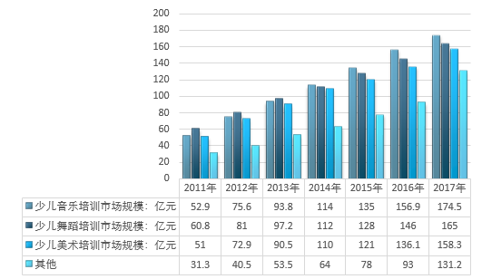 2011-2017年我国少儿艺术培训细分市场规模走势图