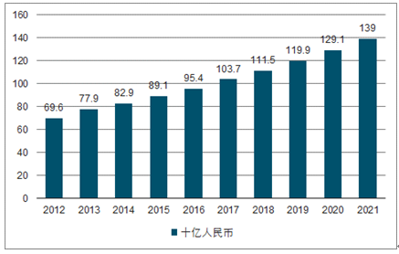 中国民办高等教育行业总收益(2012年至2021年估计)