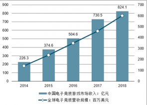 2014-2018年中国电子竞技游戏市场收入及增长情况