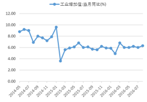 2014-2016年工业增加值同比增速持续平稳波动