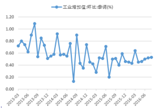 2013-2016年工业增加值环比增速近期稳中有升