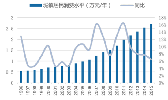 2011-2015年中国居民消费水平情况走势