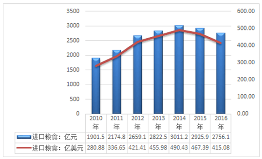 2010-2016年中国粮食行业进出口统计