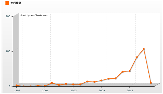 1997-2016年中国射箭行业相关专利数量分年度统计:件