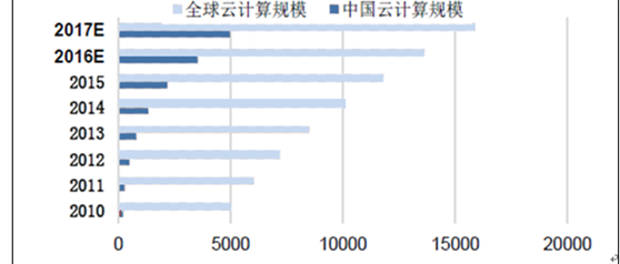 图表21:2017-2023年全球云计算市场规模及预测(单位:亿美元)