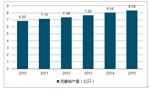 2010-2015年中国活塞销行业产量统计