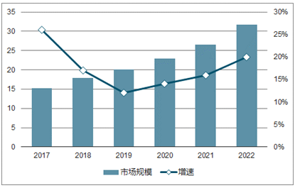 2017-2022年中国电子数据取证市场规模预测 (亿元)