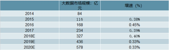中国大数据市场规模及增速走势